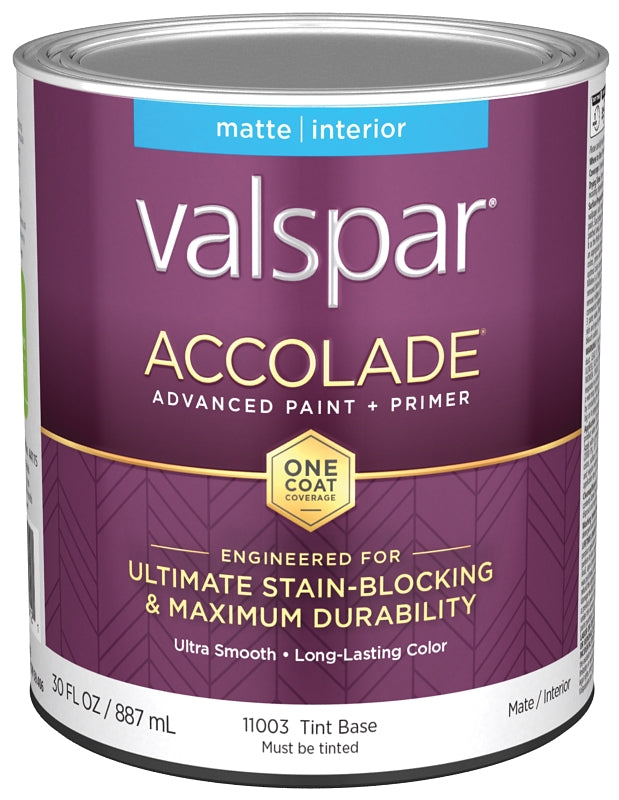 Valspar Accolade 1100 028.0011003.005 Latex Paint, Acrylic Base, Matte, Tint Base, 1 qt, Plastic Can