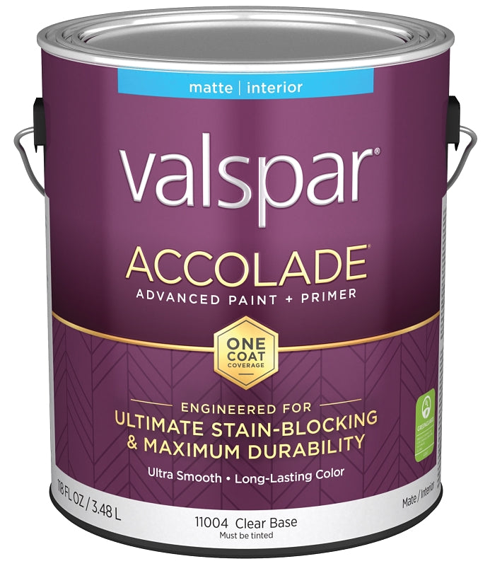 Valspar Accolade 1100 028.0011004.007 Latex Paint, Acrylic Base, Matte, Clear Base, 1 gal, Plastic Can