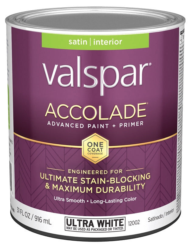 Valspar Accolade 1200 028.0012002.005 Latex Paint, Acrylic Base, Satin, Ultra White, 1 qt, Metal Can
