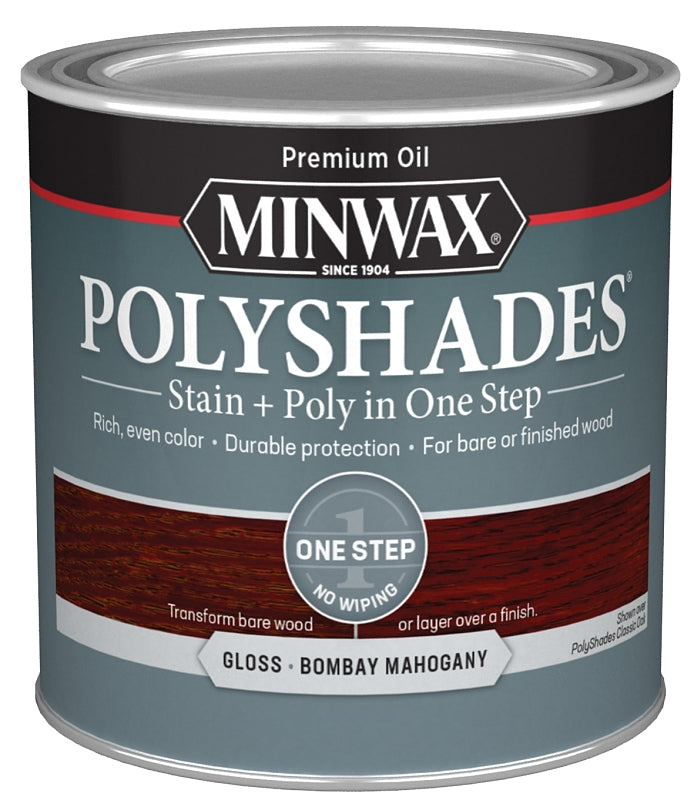 Minwax 214804444 Waterbased Polyurethane Stain, Gloss, Liquid, Bombay Mahogany, 0.5 pt, Can