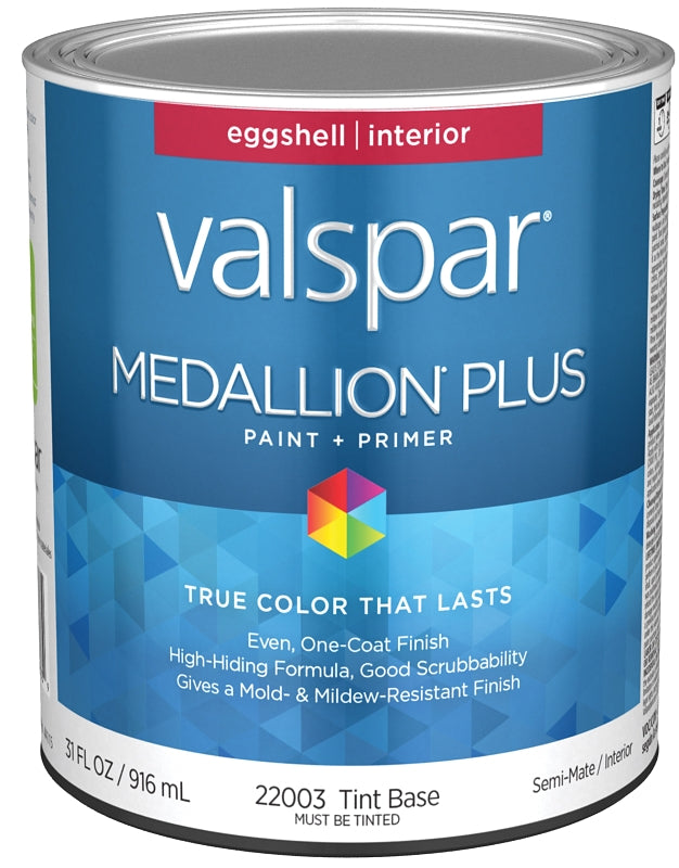 Valspar Medallion Plus 2200 028.0022003.005 Latex Paint, Acrylic Base, Eggshell Sheen, Tint Base, 1 qt, Plastic Can