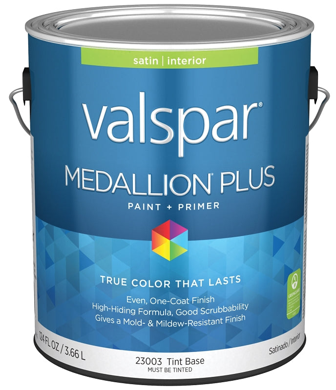 Valspar Medallion Plus 2300 028.0023003.007 Latex Paint, Acrylic Base, Satin Sheen, Tint Base, 1 gal, Plastic Can