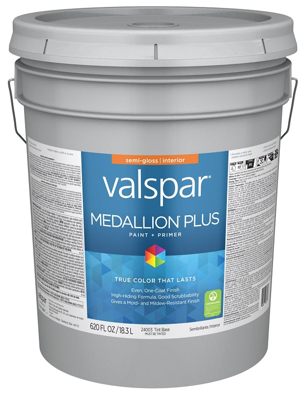 Valspar Medallion Plus 2700 028.0024003.008 Latex Paint, Acrylic Base, Semi-Gloss Sheen, Tint Base, 5 gal