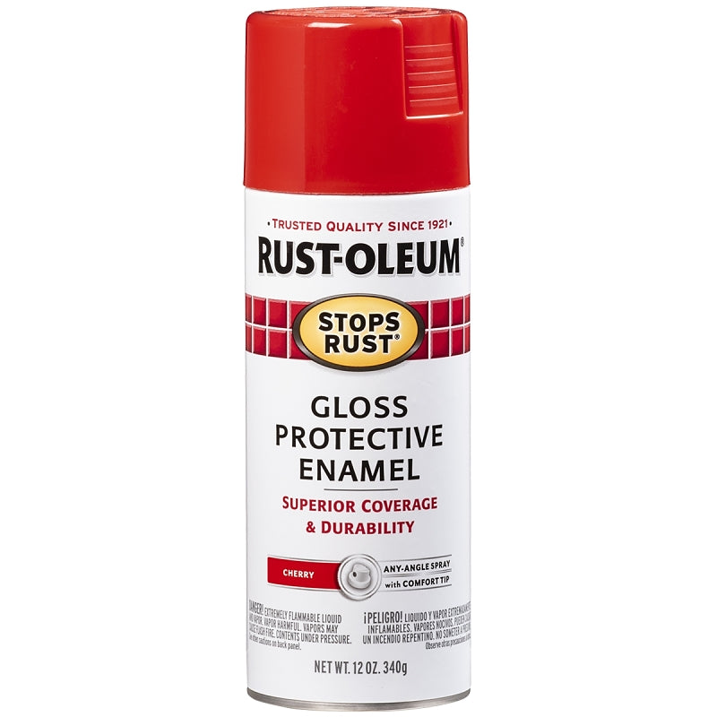 Rust-Oleum® Stops Rust enamel sprays are designed to provide a durable protective coating with excellent rust prevention and excellent resistance to abrasion, fading, chipping and dulling. These sprays apply easily, provide excellent coverage and dry fast to a tough attractive finish. Rust-Oleum® Stops Rust enamel sprays are ideal for ferrous, non-ferrous metal and wood surfaces. It features a comfort tip with a wider finger pad to reduce fatigue caused by continuous spraying and an any-angle tip which allows you to spray at any-angle. Not for use on galvanized metal. Durable, corrosion-resistant.