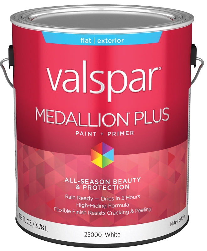 Valspar Medallion Plus 2500 028.0025000.007 Latex Paint, Acrylic Base, Flat Sheen, White Base, 1 gal, Plastic Can