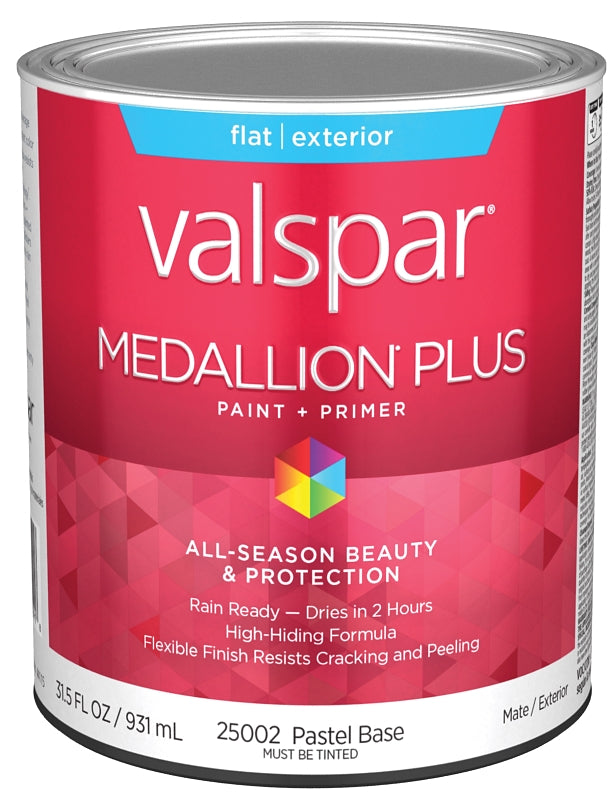 Valspar Medallion Plus 2500 028.0025002.005 Latex Paint, Acrylic Base, Flat Sheen, Pastel Base, 1 qt, Plastic Can