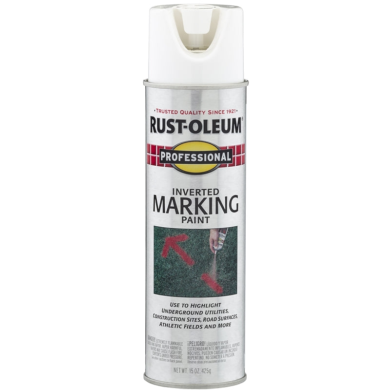 Create quick highlights for underground utilities, athletic fields, landscaping and more with Rust-Oleum® professional inverted marking paint spray. This no-mess aerosol produces easy to follow marks and sprays upside down for easy use. Fast-drying Indoor and outdoor durability Withstands short-term weathering.