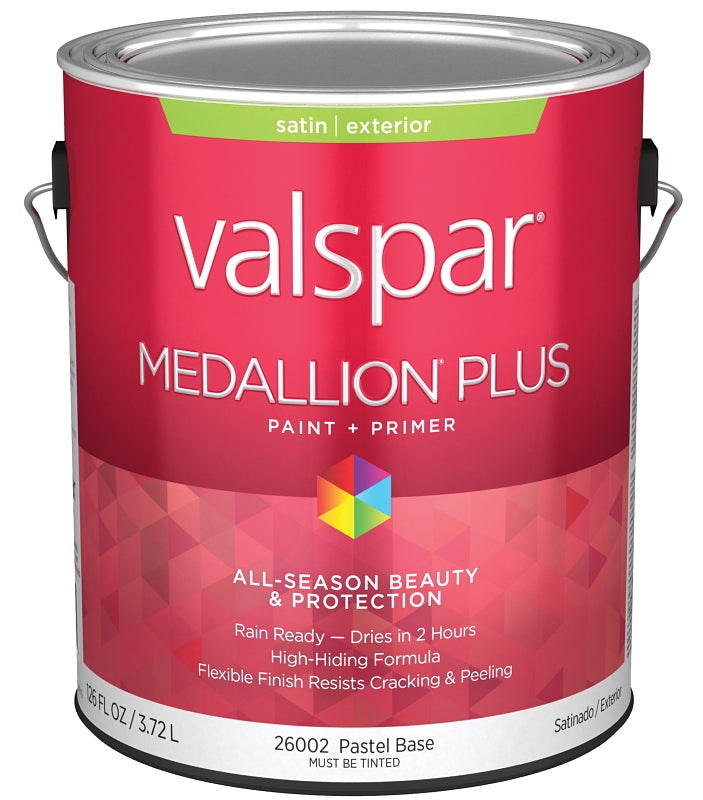 Valspar Medallion Plus 2600 028.0026002.007 Latex Paint, Acrylic Base, Satin Sheen, Pastel Base, 1 gal, Plastic Can