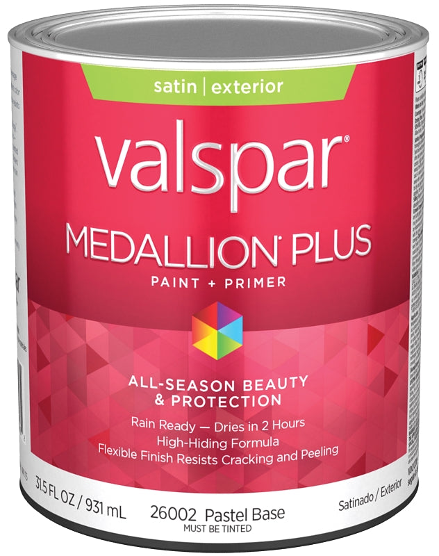 Valspar Medallion Plus 2600 028.0026002.005 Latex Paint, Acrylic Base, Satin Sheen, Pastel Base, 1 qt, Plastic Can