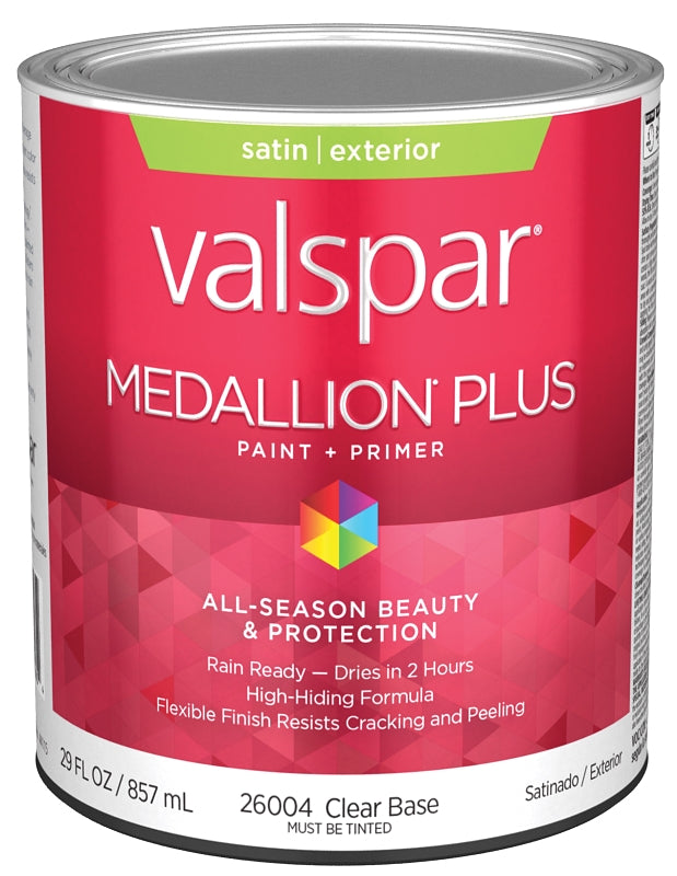 Valspar Medallion Plus 2600 028.0026004.005 Latex Paint, Acrylic Base, Satin Sheen, Clear Base, 1 qt, Plastic Can