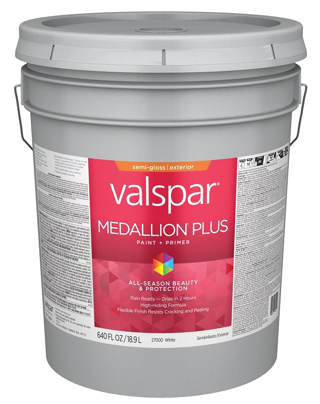 Valspar Medallion Plus 2600 028.0027000.008 Latex Paint, Acrylic Base, Semi-Gloss Sheen, White Base, 5 gal