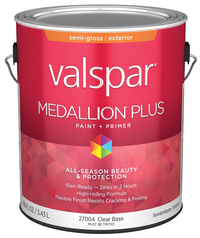 Valspar Medallion Plus 2600 028.0027004.007 Latex Paint, Acrylic Base, Semi-Gloss Sheen, Clear Base, 1 gal