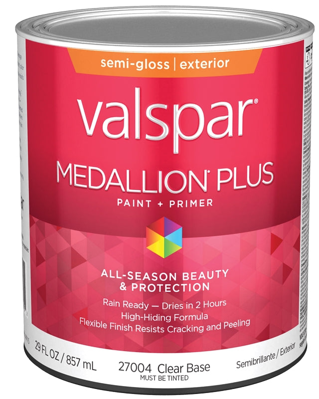 Valspar Medallion Plus 2600 028.0027004.005 Latex Paint, Acrylic Base, Semi-Gloss Sheen, Clear Base, 1 qt