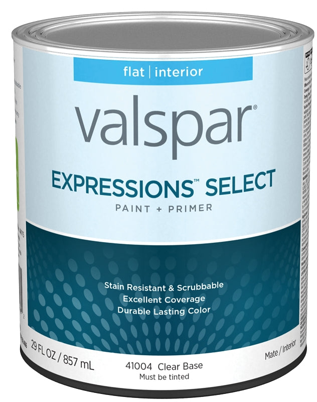 Valspar Expressions Select 4100 028.0041004.005 Latex Paint, Acrylic Base, Flat, Clear Base, 1 qt