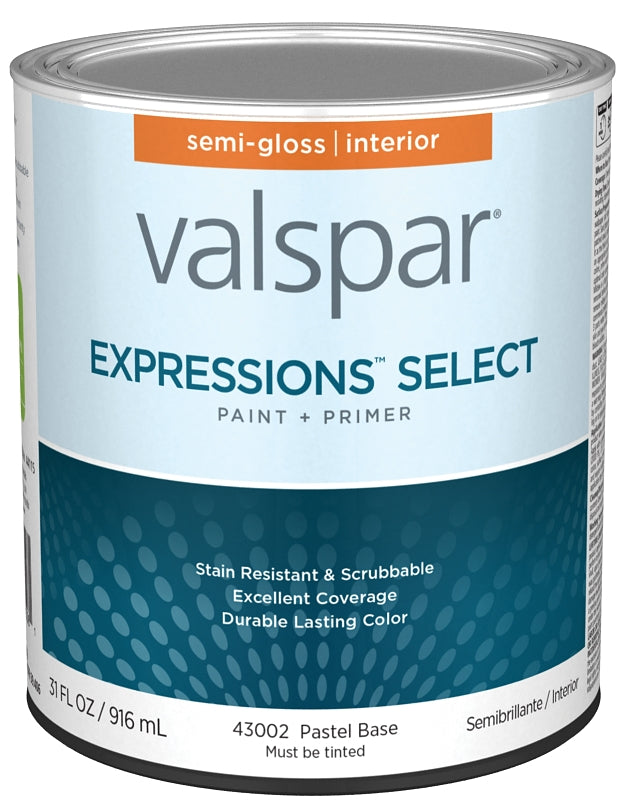 Valspar Expressions Select 4300 028.0043002.005 Latex Paint, Acrylic Base, Semi-Gloss Sheen, Pastel Base, 1 qt