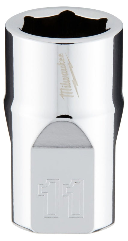 Milwaukee 45-34-9081 Socket, 11 mm Socket, Standard Socket, 3.543 in OAL, 3/8 in Drive, 6 -Point, Chrome Vanadium Steel
