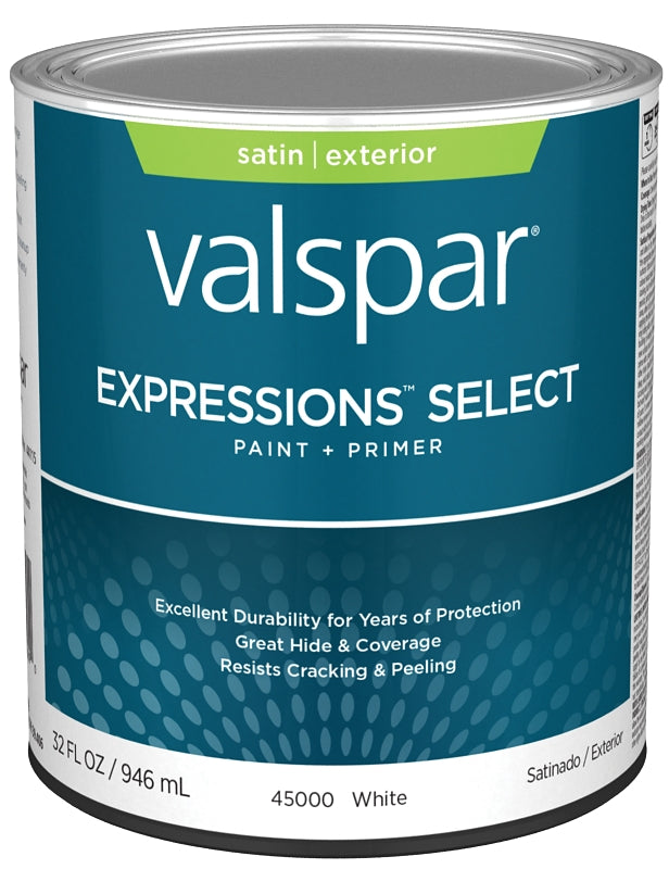 Valspar Expressions Select 4500 028.0045000.005 Latex Paint, Acrylic Base, Satin, White Base, 1 qt