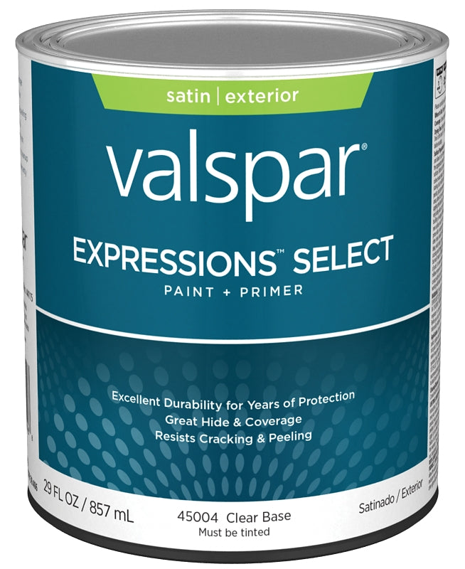 Valspar Expressions Select 4500 028.0045004.005 Latex Paint, Acrylic Base, Satin Sheen, Clear Base, 1 qt
