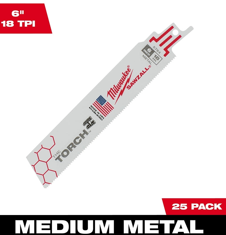 Milwaukee SAWZALL TORCH 48-00-8784 Reciprocating Saw Blade, 1 in W, 6 in L, 18 TPI, Bi-Metal Cutting Edge