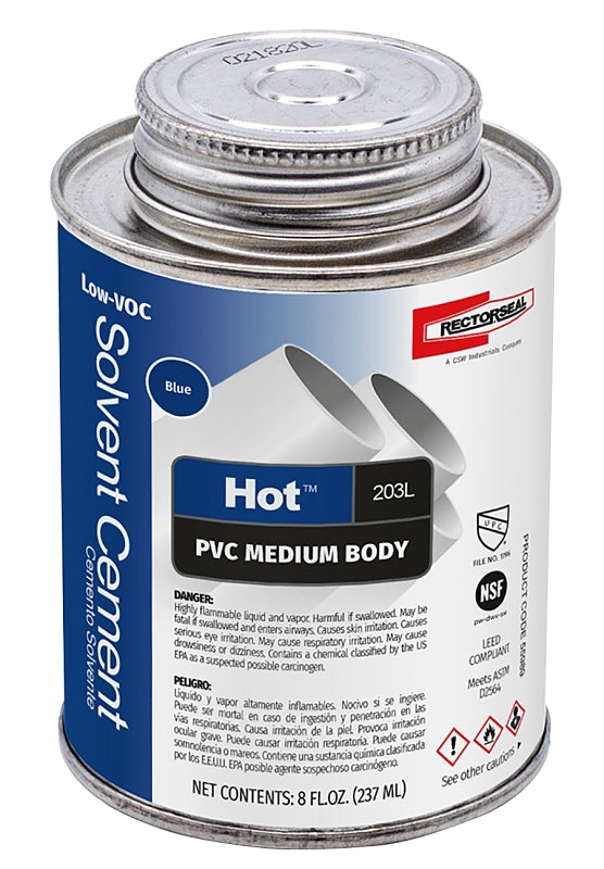 Rectorseal Hot 203L 55989 Medium Body Solvent Cement, 1/2 pt, Can, Liquid, Blue