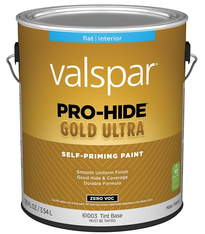 Valspar Pro-Hide Gold Ultra 6100 028.0061003.007 Latex Paint, Acrylic Base, Flat Sheen, Tint White, 1 gal