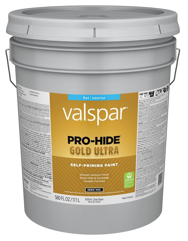 Valspar Pro-Hide Gold Ultra 6100 028.0061004.008 Latex Paint, Acrylic Base, Flat, Clear Base, 5 gal