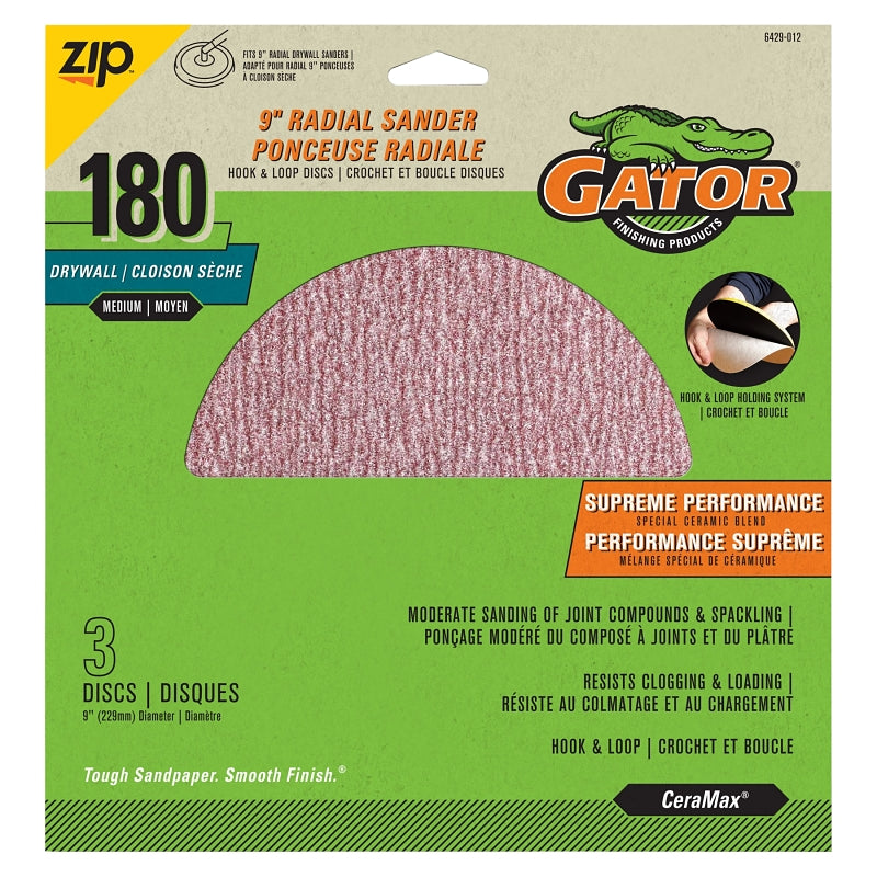 Gator 6429012 Drywall Sanding Disc, 9 in Dia, 180 Grit, Very Fine, Ceramic Alumina Abrasive