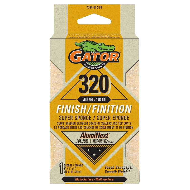 Gator 734401220 Sanding Sponge, 5 in L, 3 in W, 320 Grit, Aluminum Oxide Abrasive