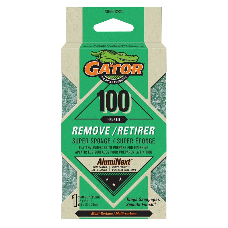Gator 736201220 Sanding Sponge, 5 in L, 3 in W, 100 Grit, Aluminum Oxide Abrasive
