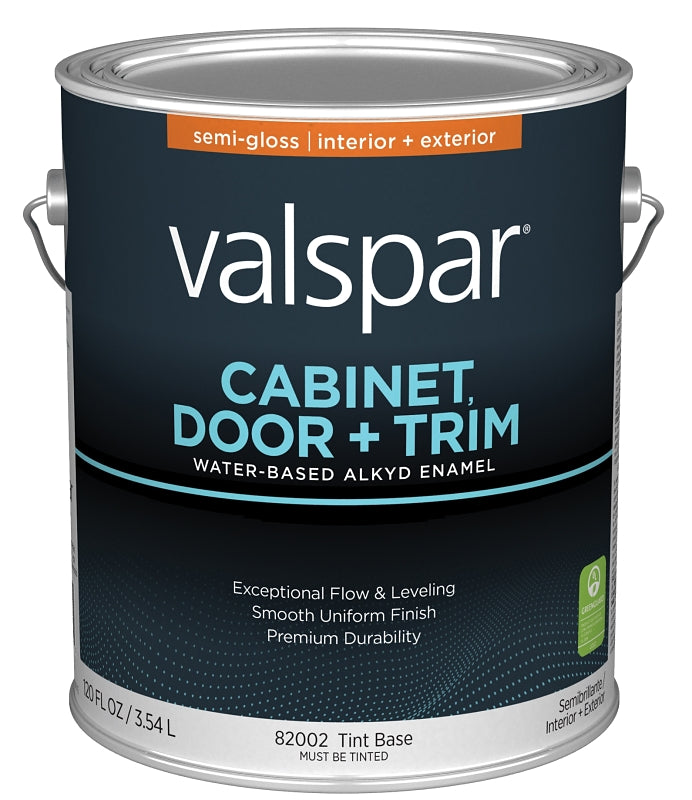 Valspar 8200 028.0082002.007 Cabinet, Door and Trim Paint Enamel, Water Base, Semi-Gloss Sheen, Tint Base, 1 gal