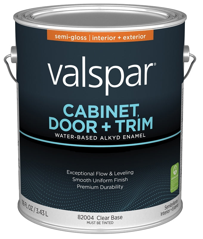 Valspar 8200 028.0082004.007 Cabinet, Door and Trim Paint Enamel, Water Base, Semi-Gloss Sheen, Clear Base, 1 gal