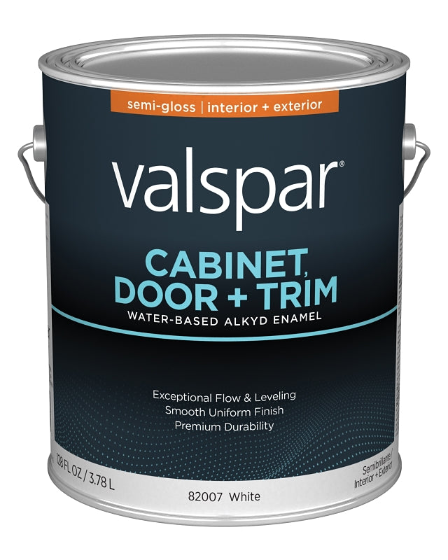 Valspar 8200 028.0082007.007 Cabinet, Door and Trim Paint Enamel, Water Base, Semi-Gloss Sheen, White Base, 1 gal