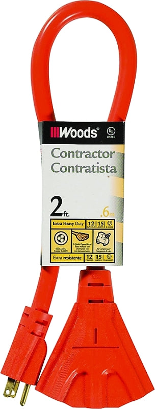 CCI 990824 Extension Cord, 2 ft L, 3 -Outlet, 15 A, 125 V, Orange Sheath