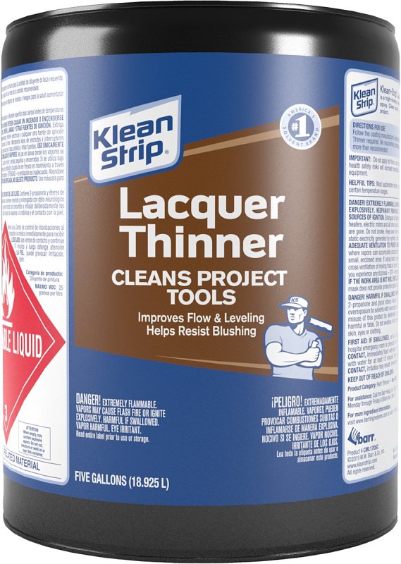 Klean Strip Lacquer Thinner, Liquid, Clear, Odor/Scent: Characteristic Ketone, Net Content: 5 gal, Compositions: Acetone {2-Propanone}, Ethanol,...