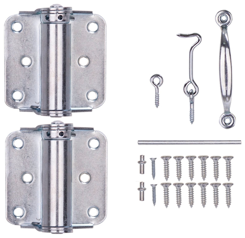 Includes 1-Pair #1 spring hinge, 4-3/4 in door pull, 2-1/2 in gate hook & eye. Steel with...