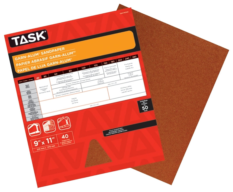 TASK Garn-Alum GAO14040 Sandpaper, 11 in L, 9 in W, Coarse, 40 Grit, Aluminum Oxide Abrasive, Kraft Paper Backing