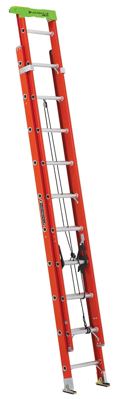 Louisville L-3022-20PT Extension Ladder, 240 in H Reach, 300 lb, 1-1/2 in D Step, Fiberglass, Orange