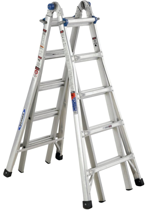 Werner MT-22 Telescoping Multi-Ladder, 22 ft Max Reach H, 20-Step, 300 lb, Type IA Duty Rating, 1-1/4 in D Step, Silver