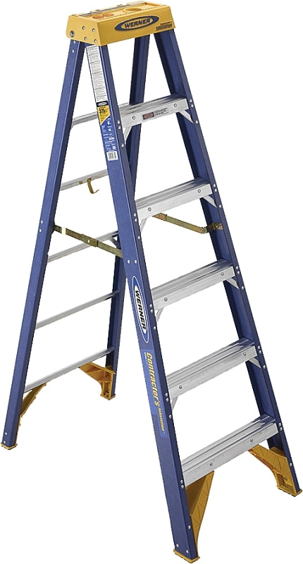 WERNER Old Blue OBCN06 Step Ladder, 10 ft Max Reach H, 5-Step, 375 lb, Type IAA Duty Rating, 3 in D Step, Fiberglass