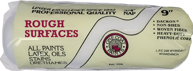 Linzer RC108-9 Paint Roller Cover, 3/4 in Thick Nap, 9 in L, Woven Fabric Cover, White