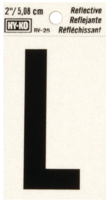Hy-Ko RV-25/L Reflective Letter, 1-1/2 in W x 3 in H Dimensions, Character: L, 2 in H Character, Black Character, Vinyl